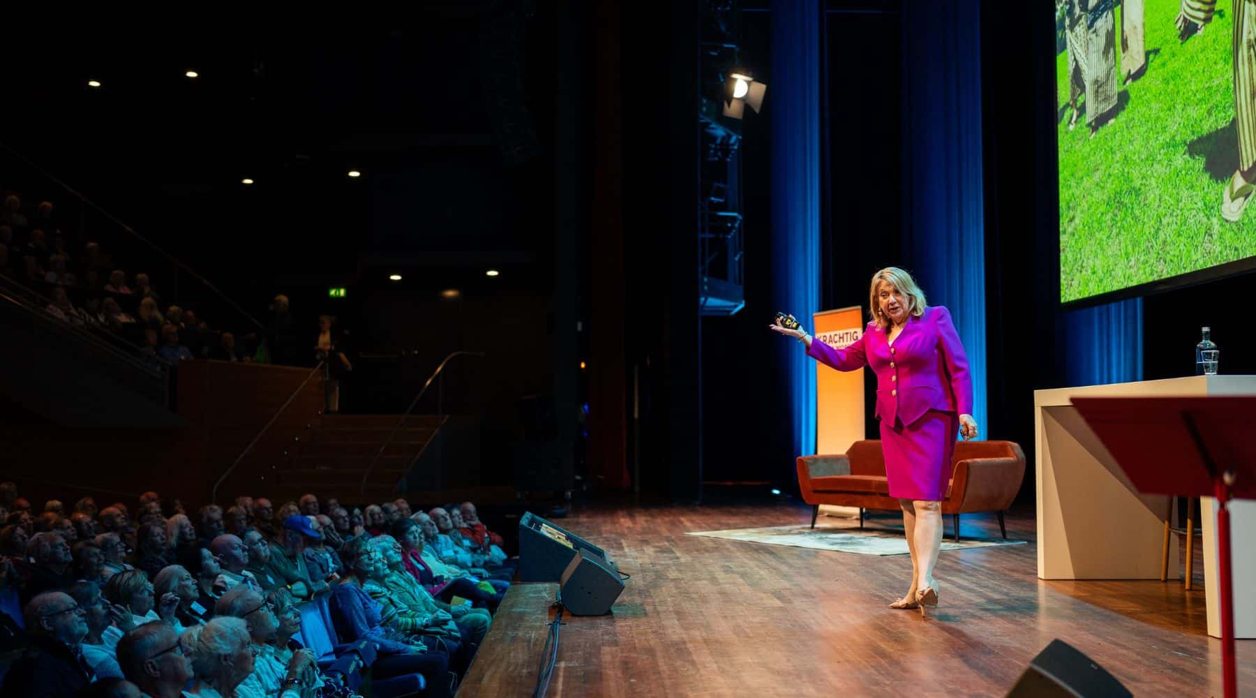 Na het dubbelinterview vertelt Pieter Hilhorst over het adviesrapport ‘De derde levensfase: het geschenk van de eeuw’. “Krachtig ouder worden gaat in de kern om autonomie, verbondenheid en van betekenis zijn. “Naarmate je ouder wordt, dreig je alle drie deze waarden te verliezen. Maar daar kun je iets aan doen. Daar gaat deze dag over.’ Cabaretière en actrice Jetty Mathurin komt op als ‘Taantje’ waarna ze als zichzelf een serieuze boodschap brengt: “Ik was er zelf niet altijd voor mijn kinderen. Dus voordat je met je kinderen praat over morgen, praat dan eerst over gisteren.”