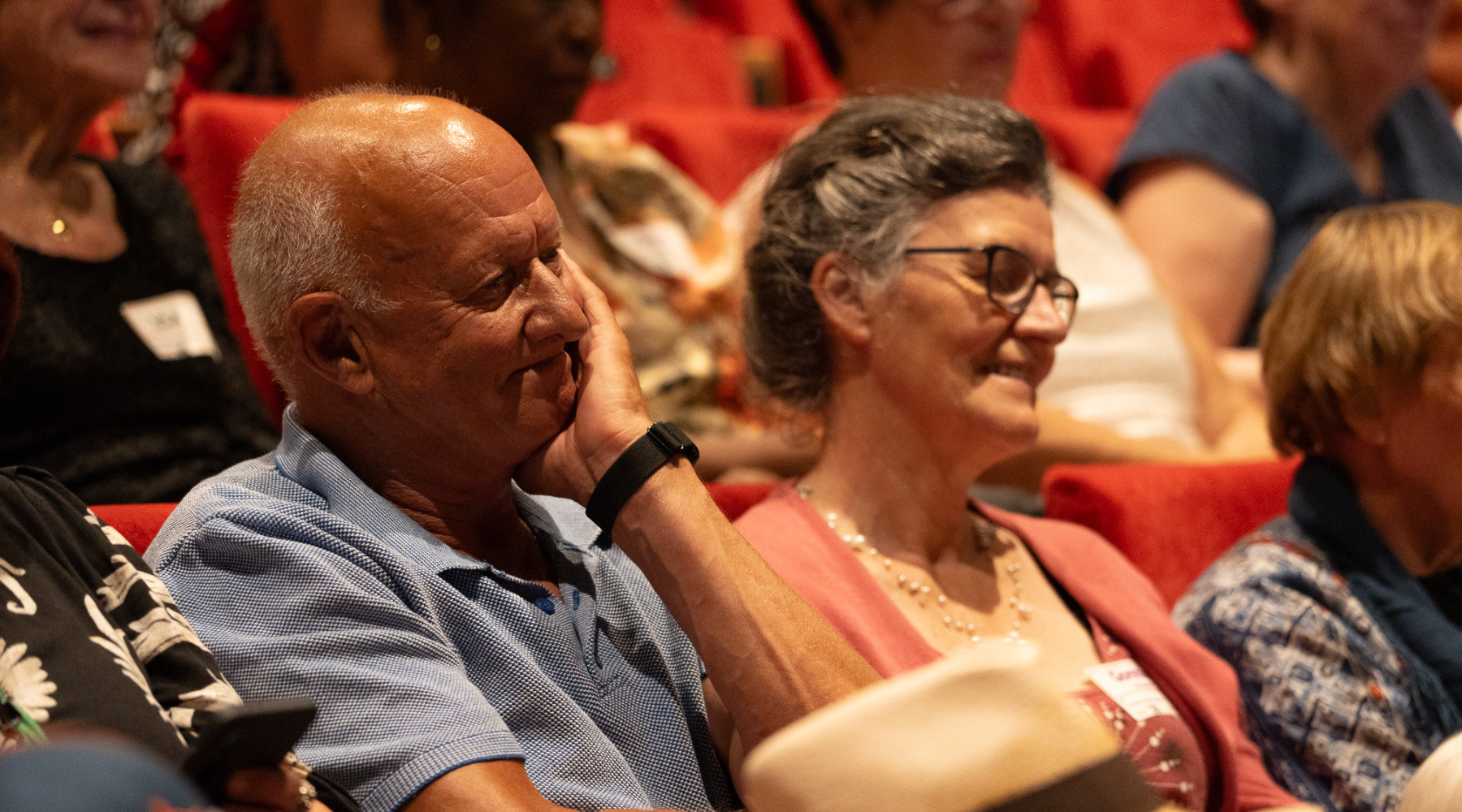 Buiten is het 33 graden Celsius, binnen is het klimaat heerlijk. Zo’n 85 mensen vanaf rond de 60 jaar en ouder verzamelen zich in het Huis van Eemnes voor de bijeenkomst. De deelnemers komen niet alleen uit Eemnes en directe omgeving maar uit gemeenten verder weg.